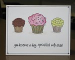 And don’t forget – I will be participating in “Get Baked! Art for your Sweet Tooth” – an Art Exhibit dedicated to Cupcakes during the first weekend in February. Come by the Arts and Culture Center and see a slew of art in a variety of mediums, all inspired by the Cupcake. Art will be for sale and partial proceeds go to Marguerite’s Place. I will be there selling all the cupcake cards you’ve seen on my Blog recently, and more! If you see a design that you HAVE to have, you are welcome to pre-order any number of cards by commenting here on my Blog (cards are 3 for $10.00 and must be picked up at the exhibit).