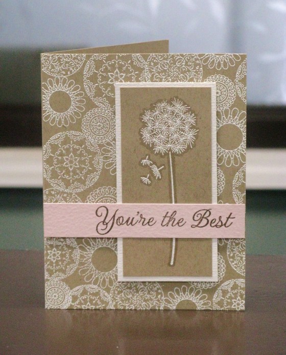 Here is my card, which was inpired by a card by Julie Ebersole, AND the Winter Blossoms Tuesday Trigger that Cath posted. I made this at the shop to go with The Paperie’s new feature “One little stamp” – this week we’re featuring the Hero Arts Dandelion and I’ve pinned some other awesome ideas on our Pinterest Board. (I spy my all-time favourite Virginia Lu card on that board).